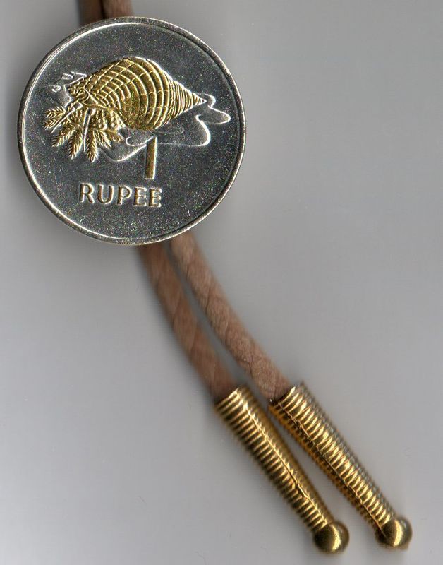 Each one of these almost un-circulated condition real 1 Rupee (a little smaller then a U.S. half dollar) coins from Seychelles is first layered in pure Bright Silver. Then the figures of each plus the 1 and CONCH are highlighted and brought to life with rich pure 24K Gold & Pure Silver (this gold & Silver work is done by hand). This breathtaking and exclusive work turns these coins into stunning and true works of art. Each coin is hermetically sealed against wear in clear, hard acrylic coating. Each one comes on a nice (soft) bolo cord and nicely boxed. Warranty 90 days BRAND : J&J Coin Jewelry