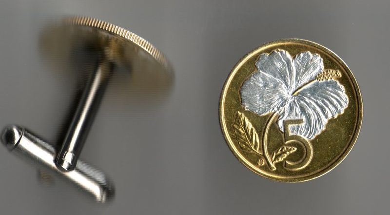 Gorgeous 2-Toned Silver and Gold Cook Is. Hibiscus - coin - cufflinks |