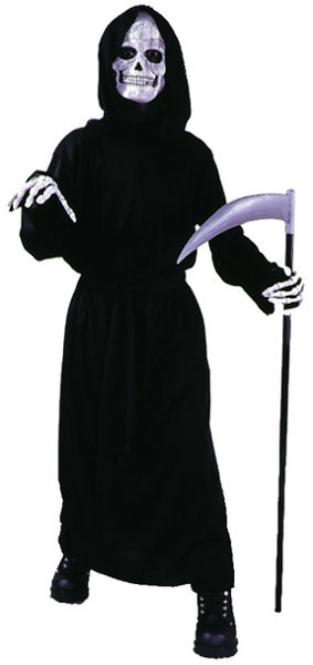Full cut horror robe with hood, skull mask, tie belt, and sculpted bone gloves. Fits up to size 12." Sold Individually Please note: If there is a color/size/type option, the option closest to the image will be shipped (Or you may receive a random color/size/type). BRAND : WMU PRODUCT_CODE : 023168087348 PRODUCT_CODE_TYPE : UPC