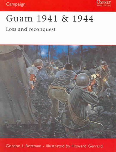 Book annotation not available for this title. Title: Guam 1941/1944 Author: Rottman, Gordon L./ Gerrard, Howard (ILT) Publisher: Osprey Pub Co Publication Date: 2004/07/01 Number of Pages: 96 Binding Type: PAPERBACK Library of Congress: oc2007102894 Additional Details \N BOOK TYPE : NF BRAND : Rottman, Gordon/ Gerrard, Howard (ILT) LANGUAGE : ENGLISH NUMBER OF PAGES : 96 PUBLISH DATE : 2004/07/01 PUBLISHER IMPRINT CODE : OSPRE PUBLISHER NAME : OSPREY PUB CO RETURNS ACCEPTED? : YES
