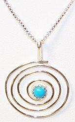 Enhance any outfit with this beautifully crafted Handcrafted Native American Circular Spiral Necklace with an attractive sterling silver design and Turquoise center Weight 3 grams Pendant: .75 in W X 1 in L Chain: 16 In L