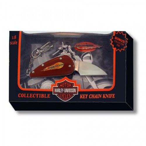 Done in 1:8 Scale, This Harley-Davidson Pocket Knife Key Chain Replicates the Cycle'S Iconic Gas Tank. the Die Cast Handle in Red Is Emblazoned with the Harley-Davidson Logo in Flames On Both Sides. a Lever At the Top, Fashioned to Replicate the Cycles Rugged Instruments, Releases the Knife From the Handle. For Easy Wear, You Can Clip the Swivel Clip Onto Your Keys or Belt Loop. with a Bonus Collector'S Harley Logo Pin, This Harley-Davidson Pocket Knife Is a Must For Any Cycle Fan. Processing Time: 1 days. BRAND : GEMAFFAIR HEIGHT : 0.25 LENGTH : 7 METAL STAMP : 66.7 METAL TYPE : STAINLESS STEEL METAL UNIT OF MEASURE : GRAMS SIZE : ONE SIZE TOTAL METAL WEIGHT : NO METAL STAMP UNIT OF MEASURE (DIMENSIONS) : IN WIDTH : 1.25
