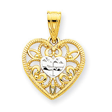 Keep Your Secrets Close to Your Heart with This Inviting Ornate Heart in Heart Filigree Heart Charm in Rhodium Plated Gold. This Intricate Decoration Is Approximately 13mm X 19mm. Consider This Charm, an Elegant Memento For You or That Family Member or Friend in Your Life. That 'Add to Cart' Button Is a Heartbeat Away with This Classy Heart Accessory. BRAND : GEMAFFAIR CHAIN TYPE : NO CHAIN TYPE CLASP TYPE : NO CLASP TYPE HEIGHT : 2 LENGTH : 19 METAL STAMP : 0.6 METAL TYPE : RHODIUM PLATED YELLOW GOLD METAL UNIT OF MEASURE : GRAMS TOTAL METAL WEIGHT : 14K UNIT OF MEASURE (DIMENSIONS) : MM WIDTH : 13