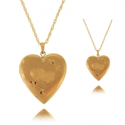 This Darling Set of Heart Lockets Is Tailored to Perfection. Each Heart Shaped Locket Features an Embellished Heart Design On the Outside Case with Subtle Decorative Accents. This Set Is Comprised of Two Different Sized Lockets Designed to Fit a Mother and Her Child or Two Siblings. Made with a Yellow Gold Fill, This Heart Locket Set Will Bring Your Look a Relaxed Sophistication That Will Never Go Out of Style. Processing Time: 1 days. BRAND : GEMAFFAIR CHAIN TYPE : SERPENTINE CLASP TYPE : SPRING RING HEIGHT : 3 LENGTH : 25 METAL STAMP : 6.1 METAL TYPE : GOLD FILLED METAL UNIT OF MEASURE : GRAMS SIZE : 18&16 TOTAL METAL WEIGHT : 14K UNIT OF MEASURE (DIMENSIONS) : MM WIDTH : 20