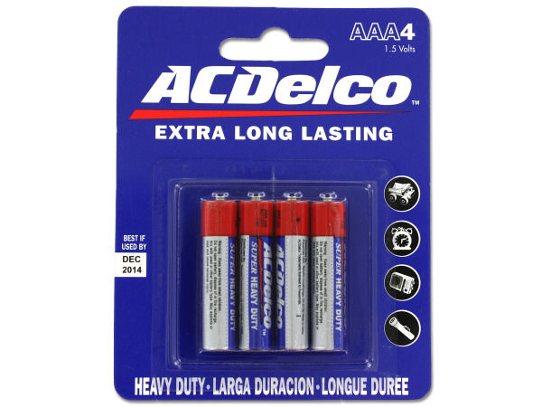 Heavy duty "AAA" batteries are ideal for remote controls, toys and small flashlights. Also great to keep on hand for back up and emergencies. Each pack comes with 4 batteries. Keep out of reach of children. Case of 72 BRAND : BULK BUYS COLORS : BLUE,RED,SILVER COLORS : BLUE,RED,SILVER MATERIALS : METAL,ALUMINUM