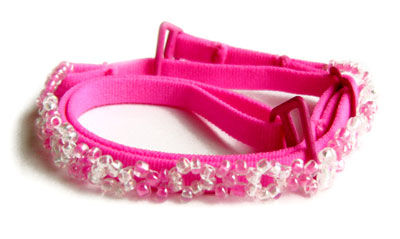 Unique hand made pinkbra straps featuring 4" of imported pink and clear Czech beads in the front of each strap. Matching color hooks and adjuster. Hand washable. W:1/4", L:16". Patented design.