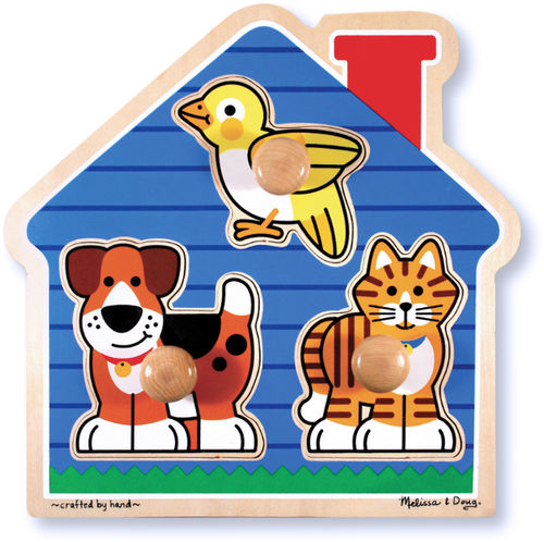 Melissa & Doug House Pets Jumbo Knob Three favorite pets live in this cozy blue house and are always ready for puzzle play. This extra thick wooden puzzle includes three pieces, with jumbo wooden knobs for easy grasping. Full-color, matching pictures appear underneath each piece. A great activity to encourage eye-hand and visual perception skills." Case Pack 2 Age Rating: 1 yr + Please note: If there is a color/size/type option, the option closest to the image will be shipped (Or you may receive a random color/size/type). Additional Details Age Rating: 1 yr + BRAND : MELISSA & DOUG PRODUCT_CODE : 000772020558 PRODUCT_CODE_TYPE : UPC