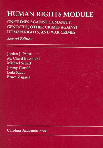 Book annotation not available for this title. Title: Human Rights Module Author: Paust, Jordan J./ Bassiouni, M. Cherif/ Scharf, Michael P./ Gurule, Jimmy/ Sadat, Leila/ Zagaris, B Publisher: Carolina Academic Pr Publication Date: 2006/08/30 Number of Pages: 431 Binding Type: PAPERBACK Library of Congress: 2006929439 Additional Details \N BINDING : PAPERBACK BRAND : Paust, Jordan J./ Bassiouni, M. Cherif/ Scharf, Michael P./ Gurule, Jimmy/ Sadat, Leila/ Zagaris, B LANGUAGE : ENG