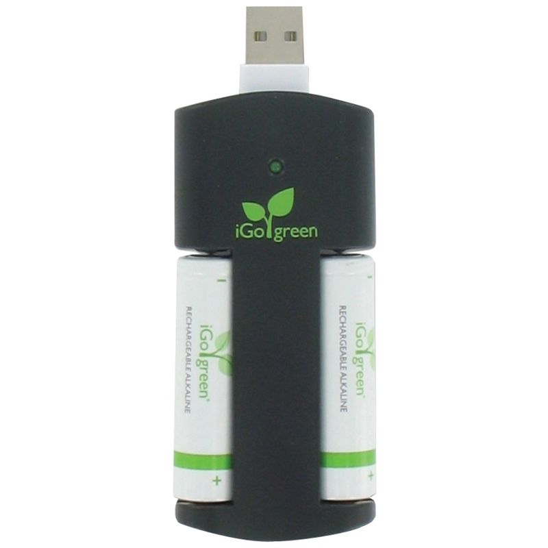 IGO AC05105-0001 2-PORT USB BATTERY CHARGERCHARGES IGO(R) GREEN RECHARGEABLE ALKALINE CELLS & NIMH BATTERIES; CHARGES AA & AAA CELLS IN ANY COMBINATION; CHARGES IN ANY STANDARD USB PORT