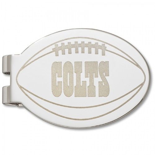 This Is Our Indianapolis Colts Laser-Etched Money Clip. This Money Clip Is Made of Solid Base Metal and Rhodium Finished so You Know It Will Last. Each Money Clip Is Then Laser Etched with the Indianapolis Colts Team Logo. As an Added Spectacular Touch, the Money Clip Itself Is Football Shape. the Colts Football Shape Money Clip Measures Approximately 1.75 Inches By 1.75 Inches in Diameter. Each One Is Nfl Officially Licensed Comes Gift Boxed in a Velvet Box. Processing Time: 10 days. BRAND : NFL Officially Licensed HEIGHT : 5 LENGTH : 57 METAL STAMP : 17.9 METAL TYPE : RHODIUM PLATED BASE METAL METAL UNIT OF MEASURE : GRAMS SIZE : ONE SIZE TOTAL METAL WEIGHT : NO METAL STAMP UNIT OF MEASURE (DIMENSIONS) : MM WIDTH : 30