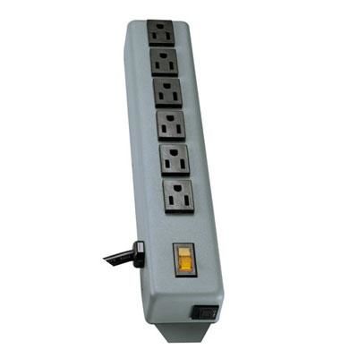 The Waber-by-Tripp Lite 6SP Power Strip offers a convenient method of power distribution in workbench, wallmount or floor mount applications. Includes 6 NEMA 5-15R output receptacles with 1.625 inch center-to-center spacing, 6-foot AC line cord and keyhole mounting tabs for installation in a wide variety of applications. Corded, multi-outlet strip reduces cable clutter and enables the connection of multiple electrical devices to a single AC wall socket. Unfiltered electrical pass-through makes 6SP ideal for distributing alternate waveform UPS or generator power. Features rugged all-metal housing, lighted power switch with transparent guard to prevent accidental shutoff, 15A resettable circuit breaker and attractive blue/gray color scheme. Lifetime warranty. PLUG/OUTLETS - Input: NEMA 5-15P/Output: 6 NEMA 5-15R ELECTRICAL - 120V AC, 50/60Hz, 15A (Requires standard NEMA 5-15R wall receptacle) FORMAT - Corded power distribution strip Key Features Multi-outlet power strip offers convenient power distribution in workbench, wallmount or floor mount applications Includes 6 NEMA 5-15R output receptacles with 1.625-in. center-to-center outlet spacing Lighted power switch with transparent snap-over guard to prevent accidental shutoff Keyhole mounting tabs support permanent installation on a wide variety of surfaces UL1363 (USA), cUL (Canada) 15A power handling capacity with circuit breaker 6-foot AC line cord Lifetime warranty Typical Applications Offers multiple outlet power distribution in workbench, wallmount or floor mount applications. Unfiltered electrical pass-through makes the 6SP ideal for distributing alternate waveform UPS or generator power to protected equipment. Package Includes 6SP Power Strip Warranty information Instruction manual BRAND : TRIPP LITE