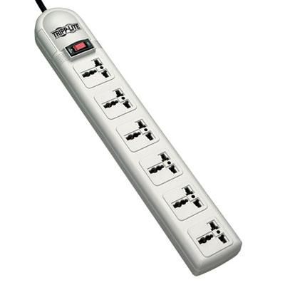 Tripp Lite's Protect It! SUPER6OMNI D offers economical AC surge suppression for full protection of 220-250V workstations, desktop PCs, telecom systems and other sensitive electronics. Built-in AC surge suppression shields connected equipment from damage and performance problems due to transient surges. The SUPER6OMNI D offers 6 universal outlets and a 1.8 meter AC line cord with German/French plug. AC suppression rated at 750 joules shields equipment from surges and line noise. Lighted on/off switch with integrated circuit breaker provides power control over connected equipment. Right-angle outlets keep connected cords from blocking adjacent outlets. Attractive light gray high-impact housing. Lifetime warranty. INPUT: 1.8 m AC line cord with German/French plug OUTPUT: 6 universal receptacles ELECTRICAL: 220-250V AC, 50/60Hz, 10A FORMAT: Corded multi-outlet strip SUPPRESSION: - AC: 750 joules Key Features Protect It! SUPER6OMNI D offers economical AC surge suppression 750 joules AC surge suppression shields equipment from surges and line noise 6 universal outlets protect computers and peripherals 1.8 m AC line cord with German/French plug Built-in power switch and 10 amp circuit breaker offers power control and overload protection over all outlets Fail-safe thermal fusing protects against fire and other damage in the event of an extreme, extended overvoltage or surge condition Attractive light gray high-impact housing with keyhole mounting tabs allow versatile placement options Right-angle outlets keep connected cords from blocking adjacent outlets Lifetime warranty Typical Applications Ideal for any desktop, network or home computing application requiring AC surge suppression Package Includes SUPER6OMNI D AC surge suppressor Instruction manual and warranty information BRAND : TRIPP LITE