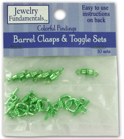 Jewelry Toggles and Clasps - Green barrel clasps and toggle sets.