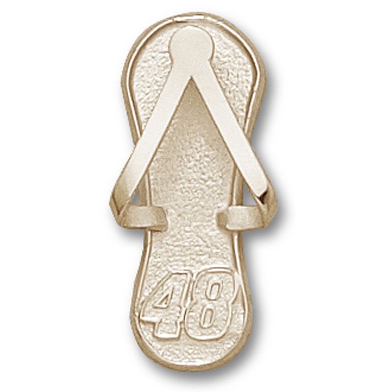 We Offer This Bright Number 48 Flip Flop Pendant Forged of Gold Plated. This Reveals a Number 48 Flip Flop Style of Nascar Driver Jimmie Johnson. This Pendant Is Polished to a Refined Mirror Like Polish Metal. Seize This Adorable Number 48 Flip Flop Pendant Now and Show How Much a Devoted Fan You Are. Processing Time: 10 days. BRAND : NASCAR OFFICIALLY LICENSED CHAIN TYPE : NO CHAIN TYPE CLASP TYPE : NO CLASP TYPE HEIGHT : 2 LENGTH : 25 METAL STAMP : 2.5 METAL TYPE : GOLD PLATED METAL UNIT OF MEASURE : GRAMS TOTAL METAL WEIGHT : NO METAL STAMP UNIT OF MEASURE (DIMENSIONS) : MM WIDTH : 19