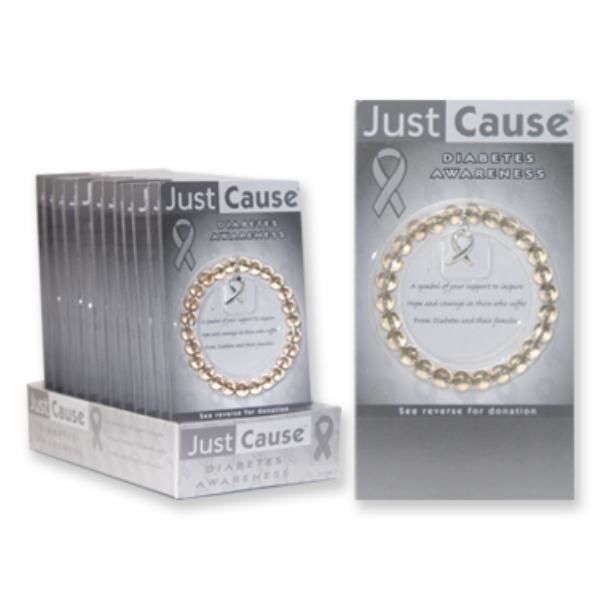 Just Cause Diabetes Awareness For each Just Cause bracelet purchased, a portion of the proceeds is contributed to treatment and research. Product features include: Gray Glass Beads Stretch Bracelet Design Ribbon Charm Includes Display" Case Pack 36 Please note: If there is a color/size/type option, the option closest to the image will be shipped (Or you may receive a random color/size/type). Additional Details As we rotate stock, everything with an expiration date will have at least a 2 year shelf life (unless otherwise specified)null BRAND : DDI PRODUCT_CODE : 722950151785 PRODUCT_CODE_TYPE : UPC