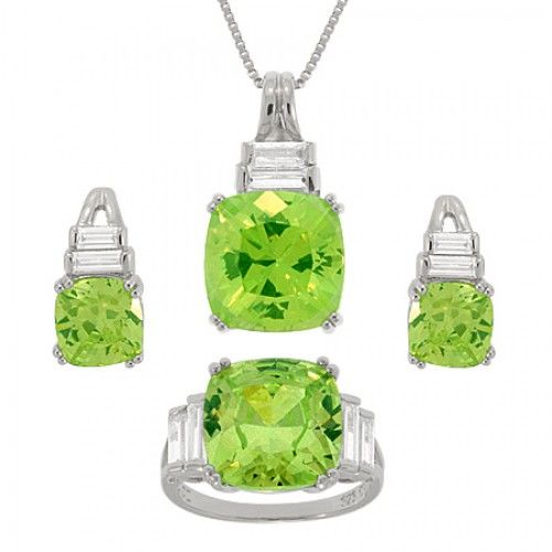 Get It All with This Key Lime Ice 3 Piece Set Including a Key Lime Ice Ring, Earrings and Necklace. Prong Set in Sterling Silver, These Key Lime Ice Cubic Zirconia Stones Offer a Vibrant Appeal with an Accent On Style. This Fabulous Set Includes a Matching Ring, Earrings and Pendant That You Can Wear Together For a Look That'S Totally Unique, or Separate to Jazz Up Your Other Jewelry. Processing Time: 1 days. BACKFINDING : POST WITH FRICTION BACK BRAND : GEMAFFAIR CHAIN TYPE : BOX CLASP TYPE : SPRING RING GEM TYPE : CUBIC ZIRCONIA HEIGHT : 7 LENGTH : 11 METAL STAMP : 17.5 METAL TYPE : STERLING SILVER METAL UNIT OF MEASURE : GRAMS SIZE : 5.5 SIZE : 5.5 STONE CLARITY : I1 STONE COLOR : MULTIPLE COLORS STONE CUT : VERY GOOD CUT STONE SHAPE : SPECIAL CUT SHAPE STONE WEIGHT : 17 TOTAL DIAMOND WEIGHT : 17 TOTAL GEM WEIGHT : 17 TOTAL METAL WEIGHT : 8.6 TOTAL METAL WEIGHT : 8.6 TOTAL METAL WEIGHT : 925 STERLING UNIT OF MEASURE (DIMENSIONS) : MM WIDTH : 18