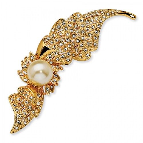 Add Some Class to Your Attire with This Exquisite Jackie Kennedy Flourish Pin in 24k Yellow Gold Plating. This Magnificent Jackie Kennedy Pin Measures 5 X 10 X 40mm, a Truly Extravagent Accesory to Any Professional Attire. You Can Be Just As Fashionably Marvelous As Jackie Kennedy Was with This Jackie Kennedy Pin Accented By Superb Swarovski Crystal and Created Pearls. Make All the Men Pine with This Seductive Jackie Kennedy Flourish Pin in 24k Yellow Gold Plating. Processing Time: 1 days. BRAND : JACQUELINE KENNEDY GEM TYPE : CREATED PEARL NUMBER OF PEARLS : 1 PEARL LUSTRE : MEDIUM LUSTER PEARL MINIMUM COLOR : WHITE PEARL SHAPE : ROUND PEARL STRINGING METHOD : NOT STRUNG PEARL SURFACE MARKINGS AND BLEMISHES : LIGHTLY BLEMISHED PEARL TYPE : SIMULATED PEARL PEARL UNIFORMITY : GOOD TO VERY GOOD SIZE PER PEARL : 5.0MM TOTAL GEM WEIGHT : 0.05