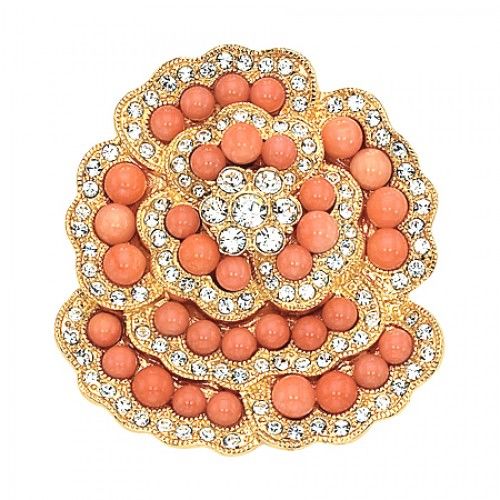Give Your Wardrobe a Presidential Feel with This Appealing Jackie Kennedy Flower Brooch in 24k Yellow Gold Plating. This Elegant Jackie Kennedy Brooch Measures 5 X 57 X 57mm, a Truly Extravagent Accesory to Any Attire. You Can Be Just As Fashionably Enticing As Jackie Kennedy Was with This Jackie Kennedy Brooch Accented By Marvelous Corals. Emit Plenty of Sparkle with This Stunning Jackie Kennedy Flower Brooch in 24k Yellow Gold Plating. Processing Time: 1 days. BRAND : JACQUELINE KENNEDY Gem Type - 2 : CRYSTAL HEIGHT : 5 LENGTH : 57 METAL STAMP : 0.5 METAL TYPE : GOLD PLATED METAL UNIT OF MEASURE : GRAMS STONE CLARITY : I1 STONE CLARITY - 2 : I1 STONE COLOR - 2 : WHITE STONE CUT - 2 : VERY GOOD CUT STONE SHAPE : ROUND SHAPE STONE SHAPE - 2 : ROUND SHAPE STONE WEIGHT : 2.00 STONE WEIGHT - 2 : 0.50 TOTAL GEM WEIGHT : 2.50 TOTAL METAL WEIGHT : NO METAL STAMP UNIT OF MEASURE (DIMENSIONS) : MM WIDTH : 57