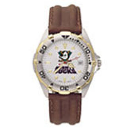 Keep Track of Time in Style with This Ladies Anaheim All Star Watch. This Ducks Watch Comes with a Stunning Two Tone Brushed Chrome Finish and Rotating Bezel. the Dial Is Decorated with the Ducks Official Logo and Comes with a Date Window. the Leather Strap Turns This Simple Timekeeping Device Into a Classy Accessory. Become the Ultimate Anaheim Fan with This Ladies Anaheim All Star Watch. BRAND : NHL OFFICIALLY LICENSED CHAIN TYPE : NO CHAIN TYPE CLASP TYPE : BUCKLES HEIGHT : 5 LENGTH : 31 METAL STAMP : 30 METAL TYPE : BRASS METAL UNIT OF MEASURE : GRAMS TOTAL METAL WEIGHT : NO METAL STAMP UNIT OF MEASURE (DIMENSIONS) : MM WIDTH : 31