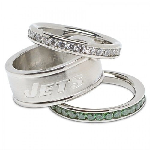 Let Everyone Know You Hold a Special Place in Your Heart For the Jets with This New York Jets Cubic Zirconia Stacked Ring Set. This Jets Ring Set Is Officially Licensed By the Nfl and Features White and Green Team Colored Cz Stones. Whether YouRe Watching From Home or Live At the Field, Cheer On the Jets in Style with This New York Jets Stacked Ring Set in Stainless Steel. Processing Time: 4 days. BRAND : NFL Officially Licensed GEM TYPE : CUBIC ZIRCONIA GEM TYPE - 2 : CUBIC ZIRCONIA METAL STAMP : 11.4 METAL TYPE : STAINLESS STEEL METAL UNIT OF MEASURE : GRAMS SIZE : 6,7,8 STONE CLARITY : I1 STONE CLARITY - 2 : I1 STONE COLOR : WHITE STONE COLOR - 2 : GREEN STONE COLOR - 3 : WHITE STONE CUT : VERY GOOD CUT STONE CUT - 2 : VERY GOOD CUT STONE SHAPE : ROUND SHAPE STONE SHAPE - 2 : ROUND SHAPE STONE WEIGHT : 1.00 STONE WEIGHT - 2 : 1.00 TOTAL GEM WEIGHT : 2.00 TOTAL METAL WEIGHT : NO METAL STAMP UNIT OF MEASURE (DIMENSIONS) : MM