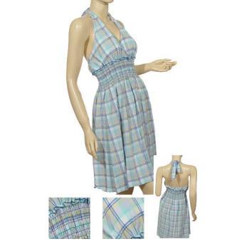 Ladies Plaid Print Dress with Support Cups Made in USA Sizes: S. M. L. Fabric: 95% Cotton, 5% Spandex Color:Blue. Case Pack 6