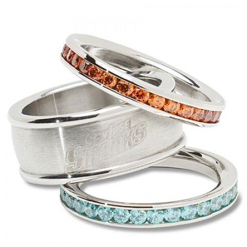 Let Everyone Know You Hold a Special Place in Your Heart For the Sharks with This San Jose Sharks Cubic Zirconia Stacked Ring Set. This Sharks Ring Set Is Officially Licensed By the Nhl and Features Orange and Blue Green Team Colored Cz Stones. Whether YouRe Watching From Home or Live At the Field, Cheer On the Sharks in Style with This San Jose Sharks Stacked Ring Set in Stainless Steel. Processing Time: 10 days. BRAND : NHL OFFICIALLY LICENSED GEM TYPE : CUBIC ZIRCONIA GEM TYPE - 2 : CUBIC ZIRCONIA METAL STAMP : 11.4 METAL TYPE : STAINLESS STEEL METAL UNIT OF MEASURE : GRAMS SIZE : 6,7,8 STONE CLARITY : I1 STONE CLARITY - 2 : I1 STONE COLOR : ORANGE STONE COLOR - 2 : BLUE GREEN STONE COLOR - 3 : ORANGE STONE CUT : VERY GOOD CUT STONE CUT - 2 : VERY GOOD CUT STONE SHAPE : ROUND SHAPE STONE SHAPE - 2 : ROUND SHAPE STONE WEIGHT : 1.00 STONE WEIGHT - 2 : 1.00 TOTAL GEM WEIGHT : 2.00 TOTAL METAL WEIGHT : NO METAL STAMP UNIT OF MEASURE (DIMENSIONS) : MM