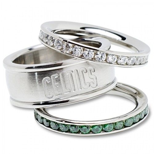 Ladies Stainless Steel Boston Celtics Stacked Ring Set