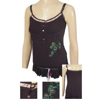Ladies Tank Top w/Adjustable Shoulder Straps Made in China Sizes: S. M. L. Man Made Fiber 95%, Lycra 5% Color: Black. Case Pack 6