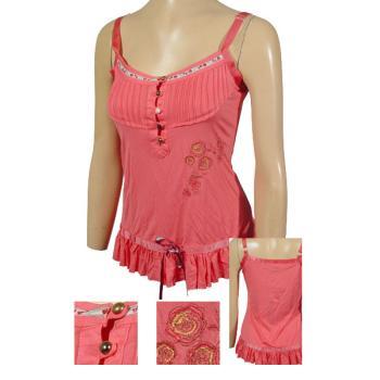 Ladies Tank Top with Adjustable Shoulder Straps Made in China Sizes: S. M. L. Man Made Fiber 95%, Lycra 5% Color: Salmon. Case Pack 6