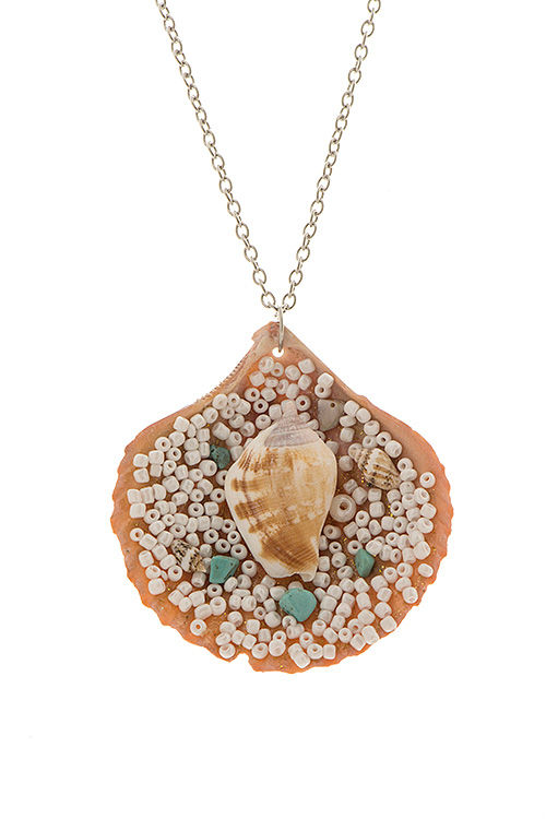 LARGE SEA SHELL SEED BEAD PENDANT NECKLACE W/ SHELL EARRINGS - CASE OF 12 |