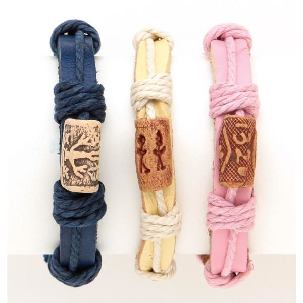 Bracelets made of genuine leather. Assorted colors and designs in a dozen. Adjustable size with these bracelets. This is a popular item for teenagers. This item cannot be shipped to TX " Case Pack 36 Please note: If there is a color/size/type optionAdditional Details As we rotate stock, everything with an expiration date will have at least a 2 year shelf life (unless otherwise specified)null BRAND : DDI