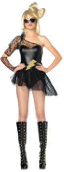 3 Pc. Includes asymmetrical bodysuit with lace sleeve and skirt, lightening belt and gauntlet glove. Black. ADULT SIZE 4-8." Sold Individually Please note: If there is a color/size/type option, the option closest to the image will be shipped (Or you may receive a random color/size/type). BRAND : WMU PRODUCT_CODE : 714718435268 PRODUCT_CODE_TYPE : UPC