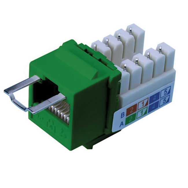 Locking Cat5e Keystone Jack, Green, RJ45 Female to 110 Punch Down, Key Sold Separately