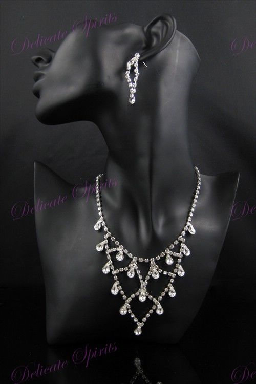 Marquise Crystal Rhinestone Prom Bridal Wedding Bridesmaid Necklace Earring Set