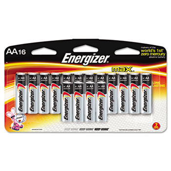 BATTERY SIZE : AA BATTERY TYPE : ALKALINE BRAND : ENERGIZER GLOBAL PRODUCT TYPE : BATTERIES-ALKALINE MATERIAL(S) : ALKALINE MANGANESE DIOXIDE POST-CONSUMER RECYCLED CONTENT PERCENT : 0 % POST-CONSUMER RECYCLED CONTENT PERCENT : 0 % PRE-CONSUMER RECYCLED CONTENT PERCENT : 0 % PRE-CONSUMER RECYCLED CONTENT PERCENT : 0 % QUANTITY : 16 PER PACK RECYCLABLE : N TOTAL RECYCLED CONTENT PERCENT : 0% UNIT OF MEASURE : PK VOLTAGE : 1.5 V