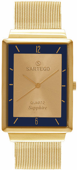 Short Description: Ultra Thin Gold Tone Dress Mesh Band Additional Details Sartego Ultra Thin Gold Tone Dress Mesh Band Men Brand: Sartego. Movement: Quartz. Designed for: Men. Watch Type: Dress. Case Material: Stainless Steel. Band Material: Stainless Steel. Band Type: Mesh. Clasp Type: FoWarranty 30 Days plus Manufacturer BRAND : SARTEGO