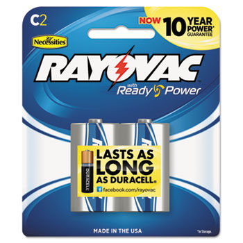 Rayovac Alkaline batteries are a great choice for powering up your electronic gadgets. Rayovac batteries are long-lasting power sources and are ideal for daily usage. You can use these alkaline batteries to run a wide range of devices, from calculators to wireless computer mice. Battery Type: Alkaline; Battery Size: C; For Use With: Any device that uses alkaline C batteries; Battery Capacity: 7245 mAh.
