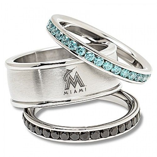 Send Miami Marlins Ring Crystal Stack Set For Women in Black & Teal QuartzSend This Page To A Friend