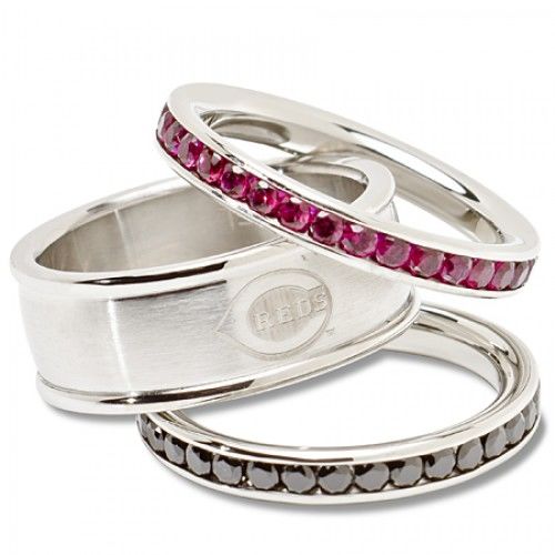 Be the Good Luck Charm Your Team Needs with This Pretty Mlb Officially Licensed Cincinnati Reds Stacked Ring Set. These Ravishing Rings Measures Around 13mm X 22mm X 2mm, Designed in Stainless Steel For Durability. Each Wonderful Set Comes with Three Rings; One Lined with Red Quartz, Another with Black Quartz and the Last with the Red'S Logo. Team Spirit Is Second to None with This Shapely Stacked Ring Set.