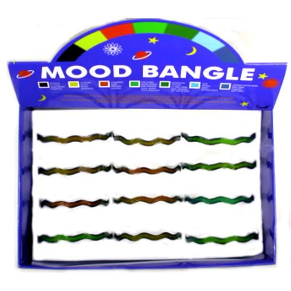 Mood bangle bracelets-wavy. Changes colors to show your mood. 12 bracelets packed in a display box.