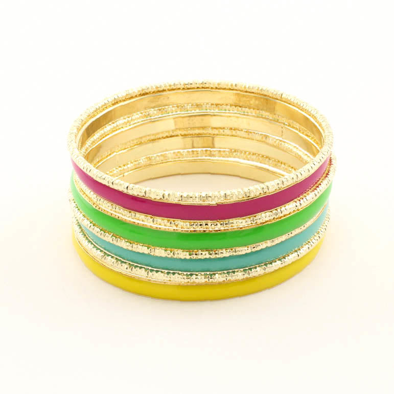 MULTI COLOR BANGLE BRACELET SET - CASE OF 6