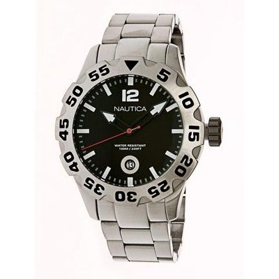 Nautica watches have a traditional and timeless design that goes without saying. From wristbands featured in classic colors to silver metals that will dazzle you the style possibilities with Nautica are endless. Our collection of Nautica mens watches serve as the perfect gift or special treat for yourself if your are seeking to add some spark to your wardrobe. This brand is sure to provide you with quality; style; and can also be purchased with the chronograph feature that can be used a stopwatch. Shop our collection today to find eye catching Nautica sports watches. Stainless steel case and bracelet. Black dial. Scratch resistant mineral crystal. Date display. Luminous hands and markers. Accurate quartz movement. Case Diameter: 53 mm. Case Thickness: 16 mm Water Resistant: 100 Meters / 330 Feet / 10 ATM Band Color: Silver Stainless Steel; Band Width: 23mm near case; 22mm near clasp/buckle; Bezel Color: Silver; Case: Silver + Circle-shaped; Case Finish: Satin + Stainless Steel; Case Thickness: 16mm; Case Width: 50mm; 55mm with crown; Clasp / Buckle: Fold Over Push Button Deployment; Dial: Black + analog; Hand Color: Black; Movement: Japanese + quartz; Time Zones: Single; Water Resistance: 10 atm; BRAND : NAUTICA