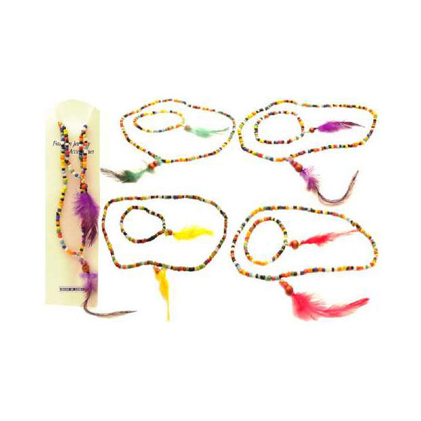 Necklace bracelet set, assorted color feathers, with multicolor beads, each set is individually carded." Case Pack 60 Please note: If there is a color/size/type option, the option closest to the image will be shipped (Or you may receive a random color/size/type). Additional Details As we rotate stock, everything with an expiration date will have at least a 2 year shelf life (unless otherwise specified)null BRAND : DDI PRODUCT_CODE_TYPE : UPC