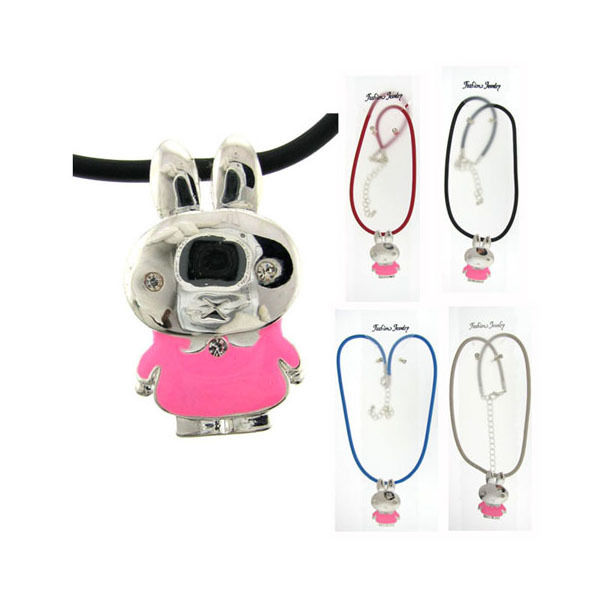 Assorted color vinyl cord with silvertone rabbit in pink enamel shirt with rhinestone eyes and button and matching rhinestone earrings, each set is individually carded ready for display." Case Pack 60 Please note: If there is a color/size/type option, the option closest to the image will be shipped (Or you may receive a random color/size/type). Additional Details As we rotate stock, everything with an expiration date will have at least a 2 year shelf life (unless otherwise specified)null BRAND : DDI PRODUCT_CODE_TYPE : UPC