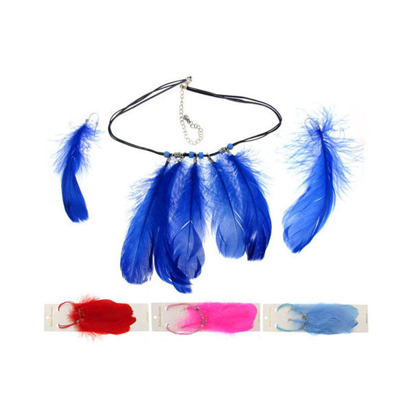 Leather look cord with bead accents and multiple feather pendant
