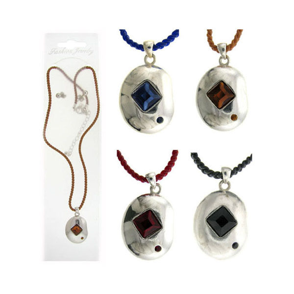 Braided vinyl cord and Silvertone pendant with faceted rhinestone insert and silver ball post earrings, assorted colors, each set is individually carded ready for display." Case Pack 60 Please note: If there is a color/size/type option, the option closest to the image will be shipped (Or you may receive a random color/size/type). Additional Details As we rotate stock, everything with an expiration date will have at least a 2 year shelf life (unless otherwise specified)null BRAND : DDI PRODUCT_CODE_TYPE : UPC