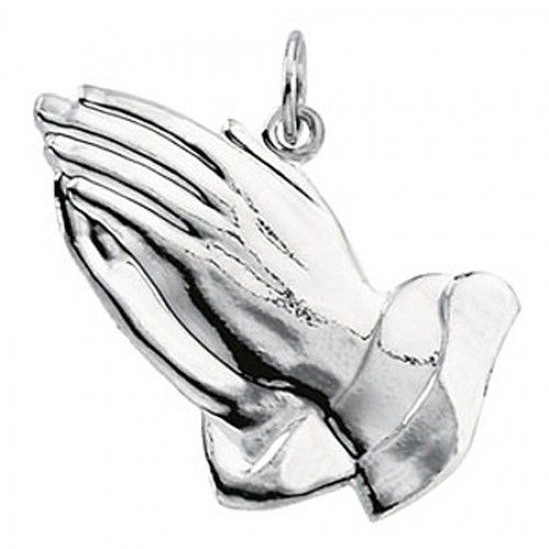 • New 14k White Gold Praying Hands Pendant - 17mm