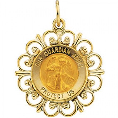 New 14k Yellow Gold Guardian Angel Pendant Medal - 22mm |