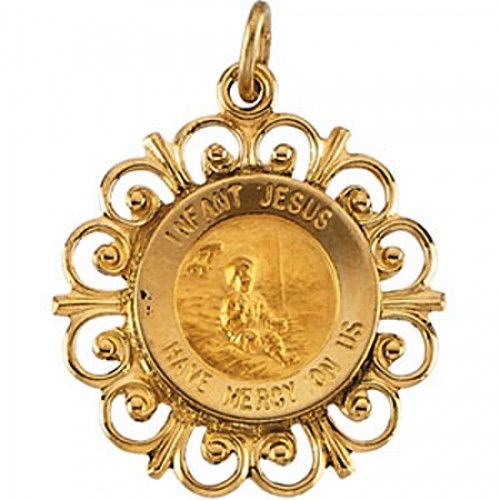 New 14k Yellow Gold Infant Jesus Pendant Medal - 22mm |