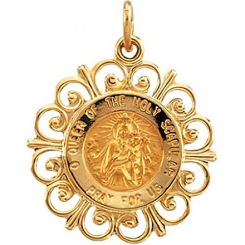 This Righteous Scapular Pendant Features Clean Lines and Striking Design. This Round Scapular Pendant Medal Is Made of Shiny 14k Yellow Gold. It Measures 22mm From End to End and 19mm Wide. Wearing This Scapular Pendant in 14k Yellow Gold Is the Perfect Way to Commemorate Your Favorite Religious Icon in Style. Processing Time: 1 days.